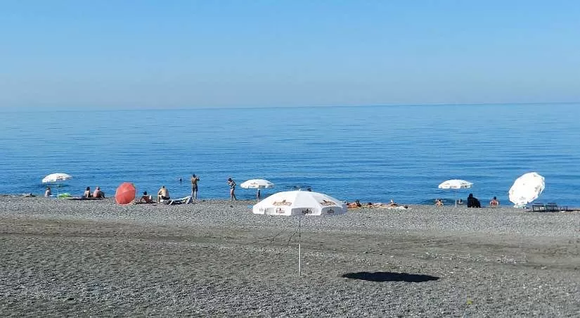галька/темный песок, побережье Черного моря всего в 50 метрах от гостиницы.