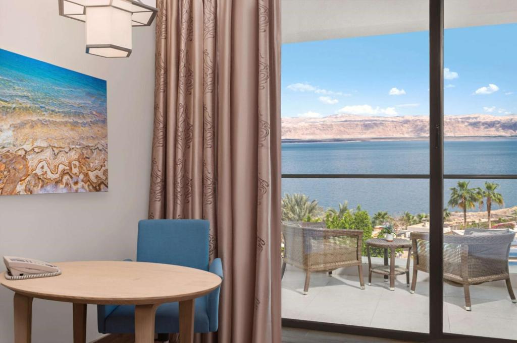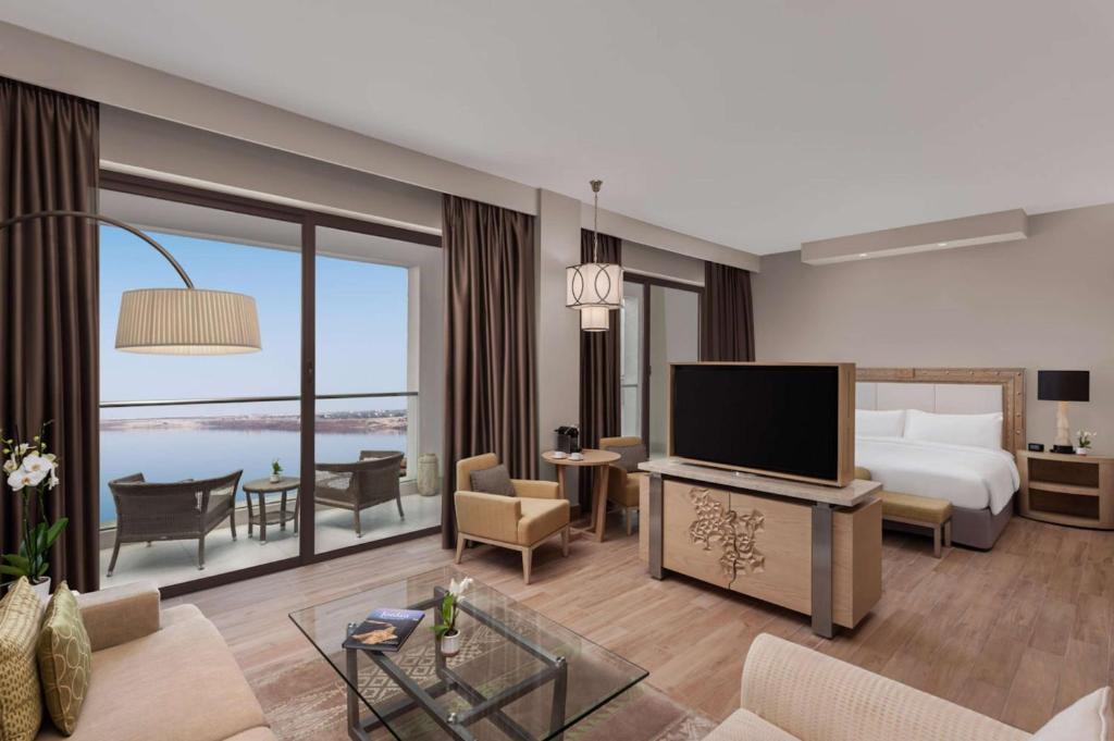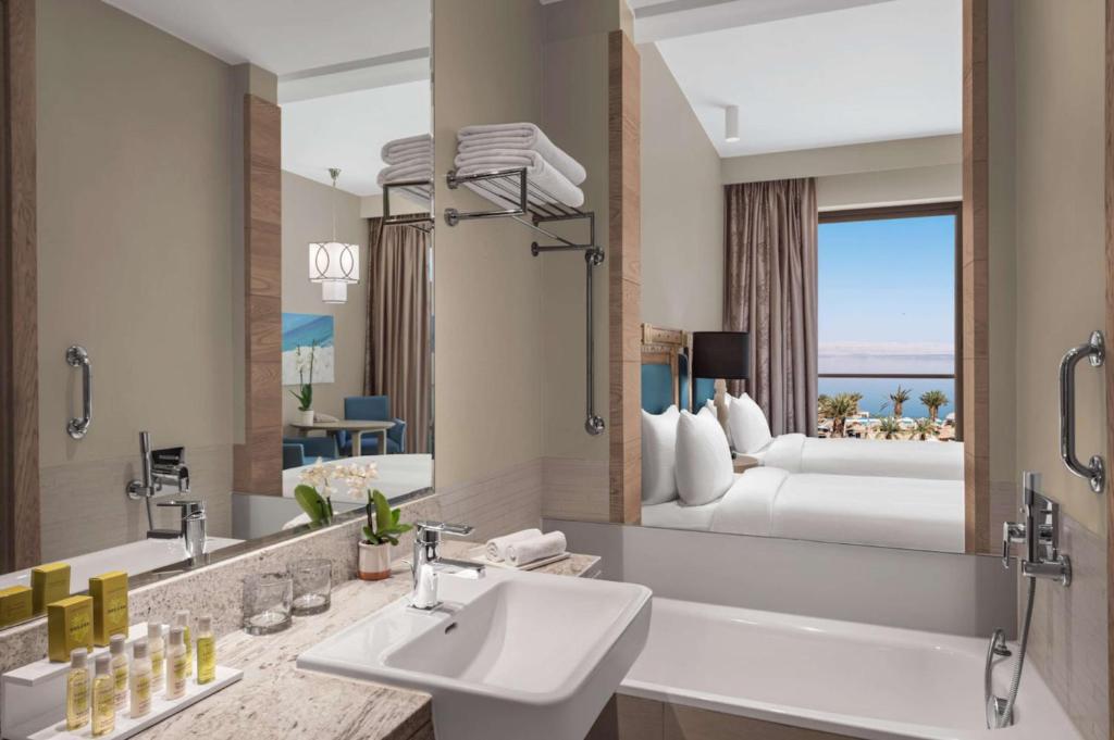 Номера оснащены кондиционером, ТВ с плоским экраном, мини-баром, кофемашиной, холодильником, выбором подушек и большими ванными с душевой кабиной; большинство имеют просторные балконы или террасы с панорамным видом на Мертвое море.