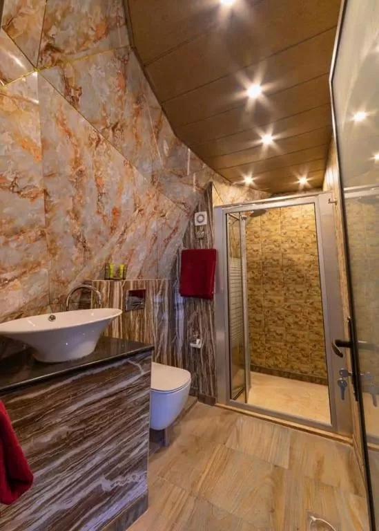 К услугам гостей собственная ванная комната, в которой есть душ, бесплатные туалетно-косметические принадлежности и халаты.