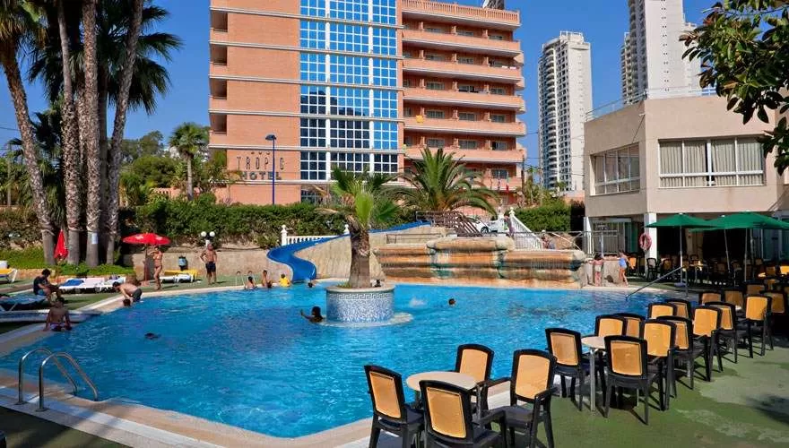 В спокойном районе, в 50 км от аэропорта, в 2 км от центра города Benidorm и в 500 метрах от пляжа. Рекомендуем для спокойного отдыха пар и семей с детьми.