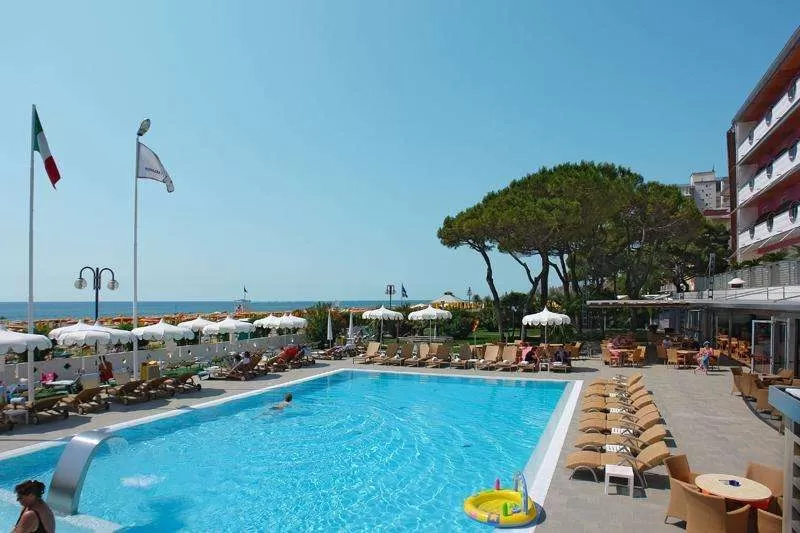 перед этим современным и комфортабельным отелем с просторными холлами, салонами с видом на море с уютными креслами и баром на террасе разбит небольшой сад с цветущим кустарником. Отель расположен в центральном районе Лидо ди Езоло, на первой линии от пляжа недалеко от площади Аврора, на которой часто устраиваются концерты.