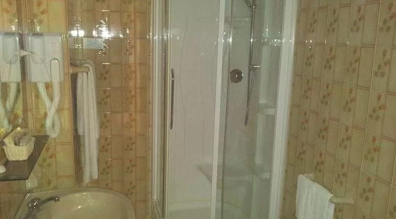ванная комната с душем или ванной, спутниковое телевидение, кондиционер, телефон.