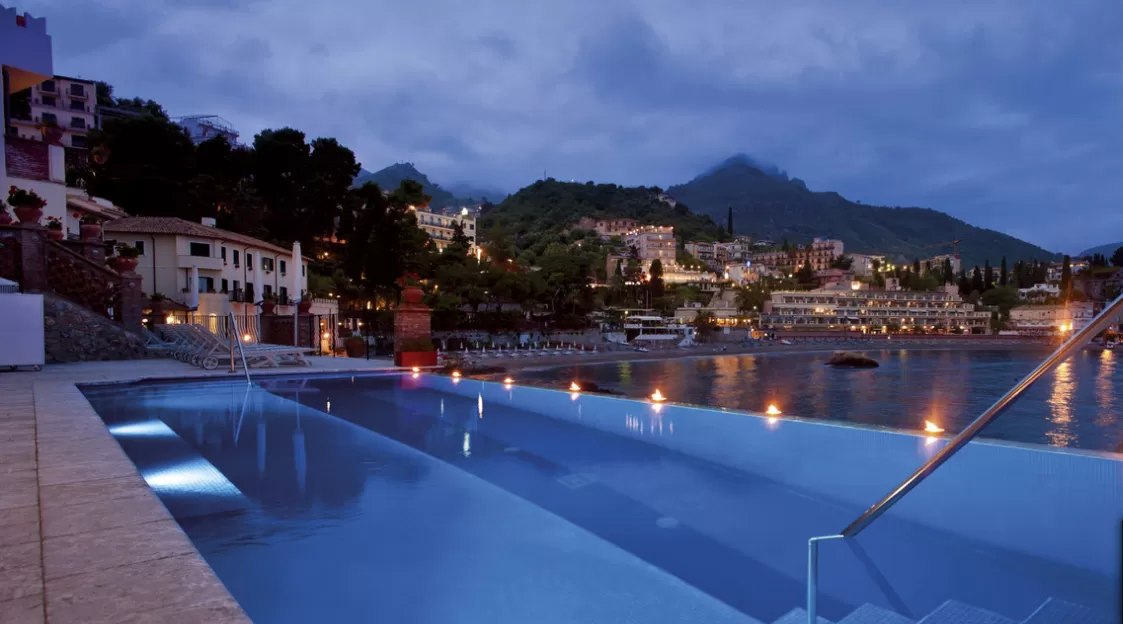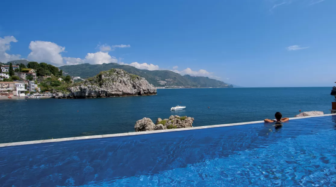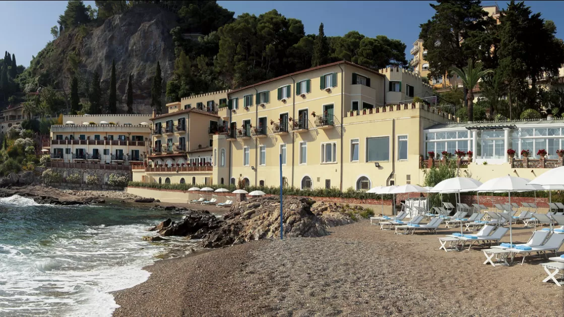 В отеле частный оборудованный песчаный пляж, открытый ежедневно с 8.00 до 18.30. В распоряжении клиентов бесплатные лежаки, зонты и пляжное полотенце, а также душ и кабины для переодевания. С июня по середину сентября на пляже работает бар, в котором клиенты могут попробовать фруктовые и овощные коктейли. На территории отеля находится подогреваемый бассейн (12/5 метров) с панорамным видом. В распоряжении клиентов бесплатные лежаки, зонты и пляжное полотенце. Клиенты отеля имеют также доступ к бассейну с подогревом в Grand Hotel Timeo 5*, до которого ежедневно курсирует бесплатный шаттл. В распоряжении клиентов бесплатные лежаки, зонты и пляжное полотенце, а также душ и кабины для переодевания. На пляже находится клуб «Scuba Diving & Water Sports», предлагающий клиентам курсы дайвинга с получением международного сертификата, подводные экскурсии, водные лыжи, прокат водных скутеров, каноэ и лодок.