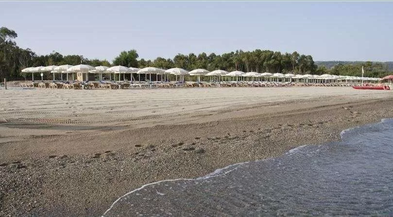 песчаный, в 150 метрах от отеля, при приобретении обязательной клубной карты оборудование на пляже предоставляется бесплатно.