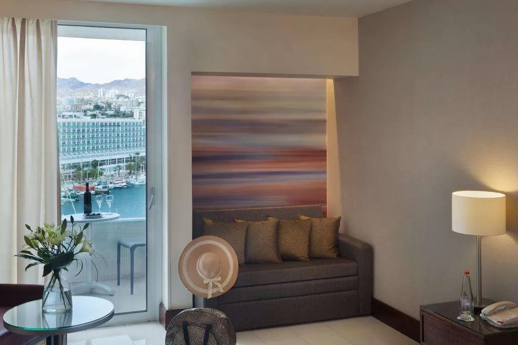 Гости пользуются собственным пляжем отеля Isrotel Royal Beach. Между отелем и пляжем проходит дорога и променад. Зонты, полотенца, шезлонги, матрасы – платно.