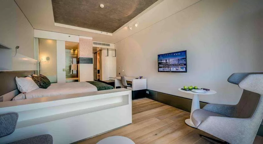 Гостиница насчитывает 230 стильных современных номеров и люксов, оснащенных всеми необходимыми удобствами для бизнесменов, туристов, романтических пар и семей. В большинстве номеров есть и большие балконы, позволяющие любоваться безбрежной панорамой и неповторимыми средиземноморскими закатами.