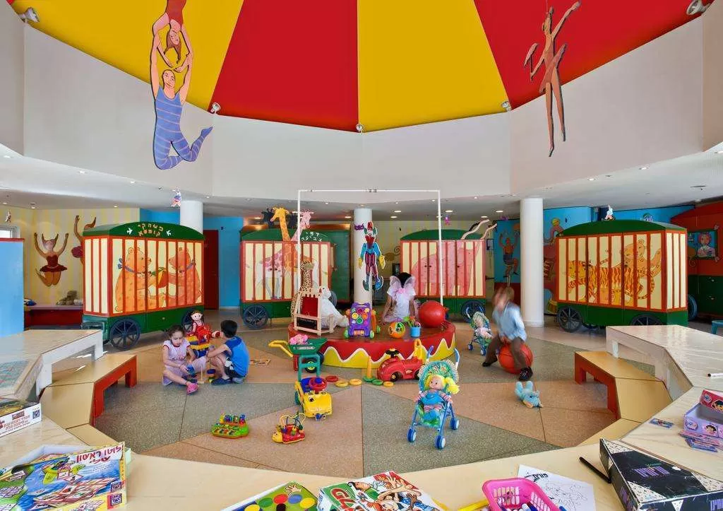 Открытый бассейн (с подогревом зимой), мини-клуб, игровая площадка, питание для младенцев Gerber (по запросу), услуги няни ($, по запросу), клуб Yeladudes (игрушки, компьютерные игры, сказки для детей), творческая мастерская, кукольный театр, уголок для самых маленьких, клуб Kiddos.
