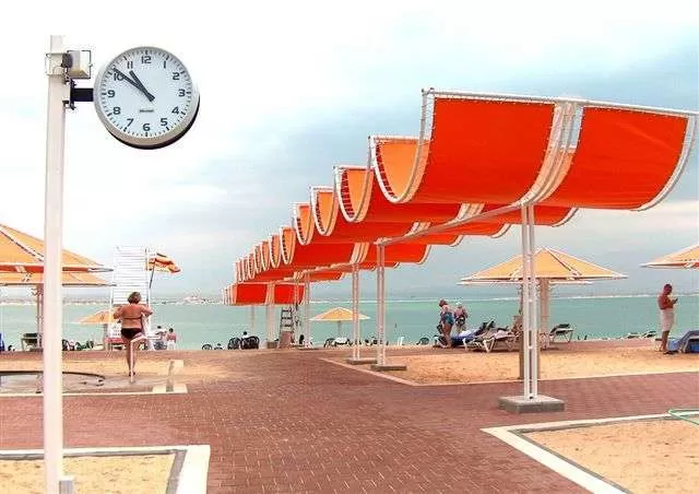 Собственный, песчаный, в 50 м от отеля. Пляжные полотенца, зонтики, шезлонги и матрасы - бесплатно.