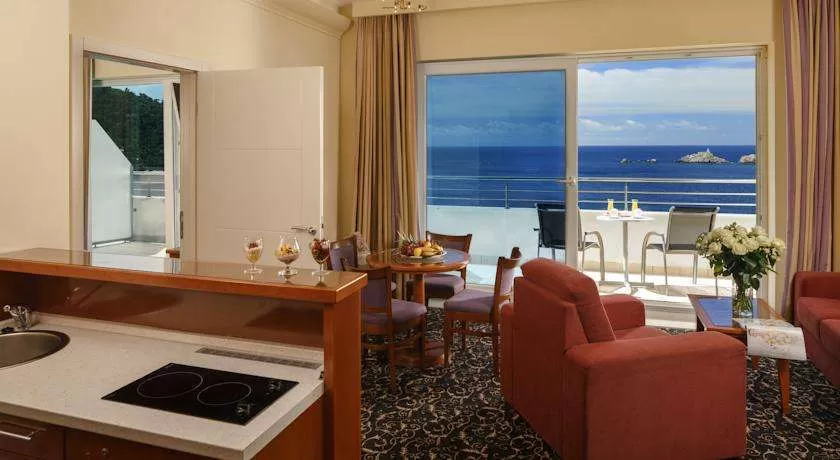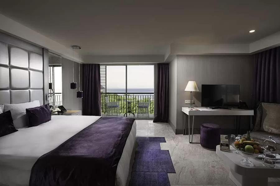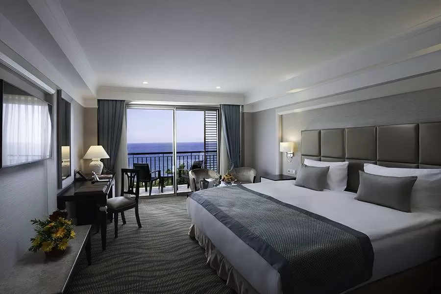 107 Standard Rooms (33 м2): с видом на горы или море, центральный кондиционер, мини-бар, сейф (бесплатно), ванна/душ, халат/тапочки, балкон, ковровое покрытие;