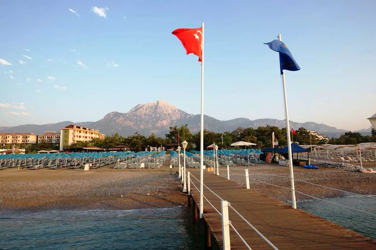 Расположен в 120 м от берега моря. Расстояние до аэропорта 70 км, расстояние до центра г. Кемер 15 км.
