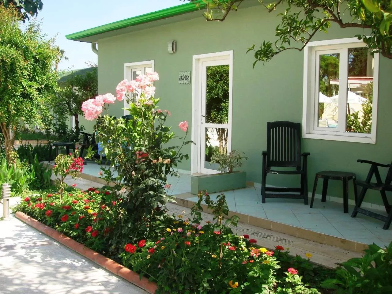 Индивидуальный кондиционер, мини-бар (каждый день 2 маленькие бутылки воды), спутниковое ТВ с российским каналом, музыкальный канал, телефон, ванная комната или душ, фен, сейф (платно), балкон, ковровое или керамическое покрытие, уборка номера – каждый день, номера с видом на море, бассейн, сад и горы, WI-FI (платно), в каждом номере есть электрочайник и набор для приготовления кофе (бесплатно).