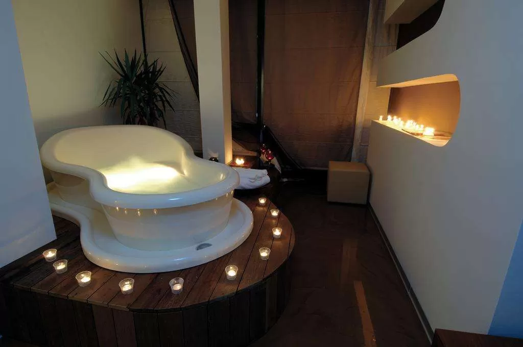 В распоряжении гостей элегантная, изящно оформленная открытая терраса с шезлонгами, на которой днем можно принять солнечные ванны, а после захода солнца — заказать прохладительные напитки и полюбоваться оригинальной подсветкой. Шезлонги и пляжные зонты предоставляются бесплатно