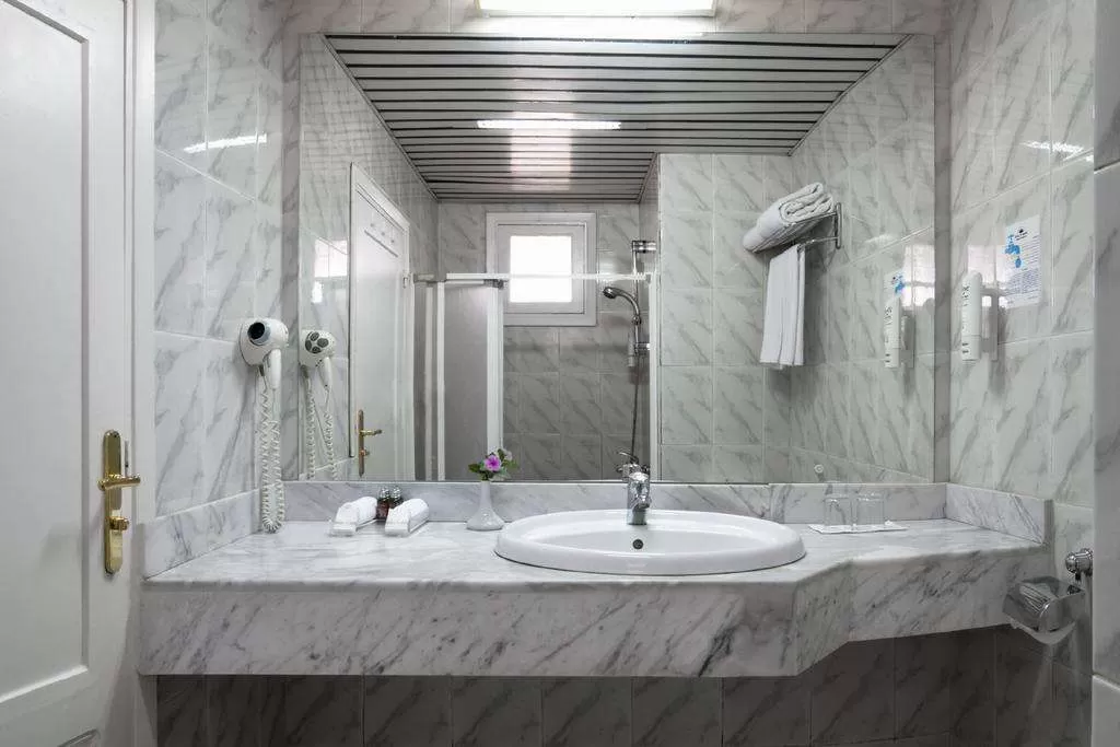 Фен в номере,индивидуальный кондиционер, душ, балкон или терраса (не во всех номерах), мини-бар, ТВ - спутниковое (есть русский канал), телефон. Уборка номера - ежедневно.