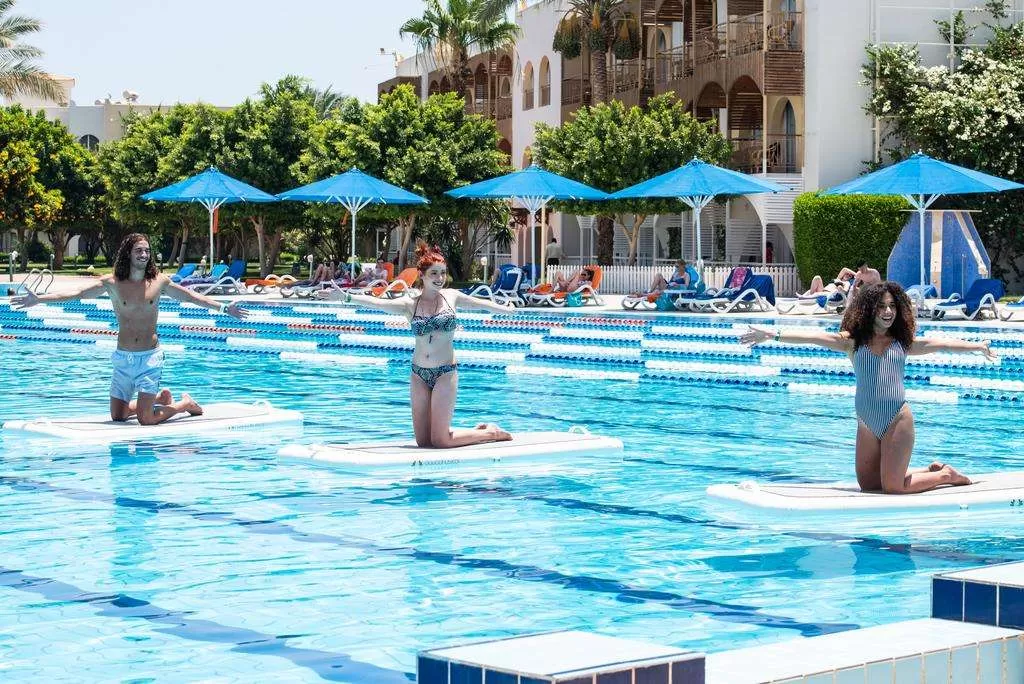 3 бассейна (1- с подогревом в зимний период), 6 водных горок (без подогрева) среднего размера для детей старше 10 лет, у бассейна полотенца, зонтики, шезлонги, матрасы, волейбол на пляже, аэробика, дартс, аэробика, аквааэробика, настольный теннис, тренажерный зал, бочче, водное поло, живая музыка, дайвинг, джакузи, освещение теннисного корта, виндсерфинг, массаж, сауна, теннисный корт, прокат теннисных ракеток и мячей, катамаран, бильярд.