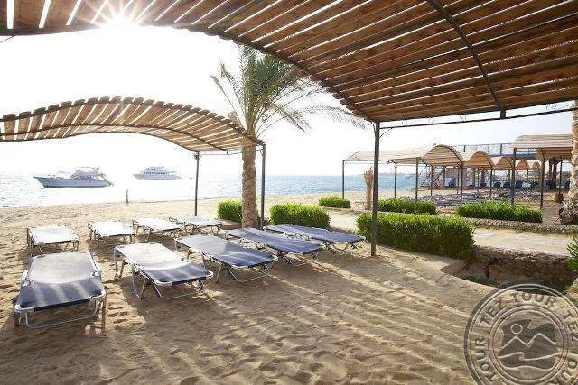 На отельном пляже есть причал и платформа (сразу глубина около 8 м). Также туристы могут воспользоваться пляжем отеля King TUT.