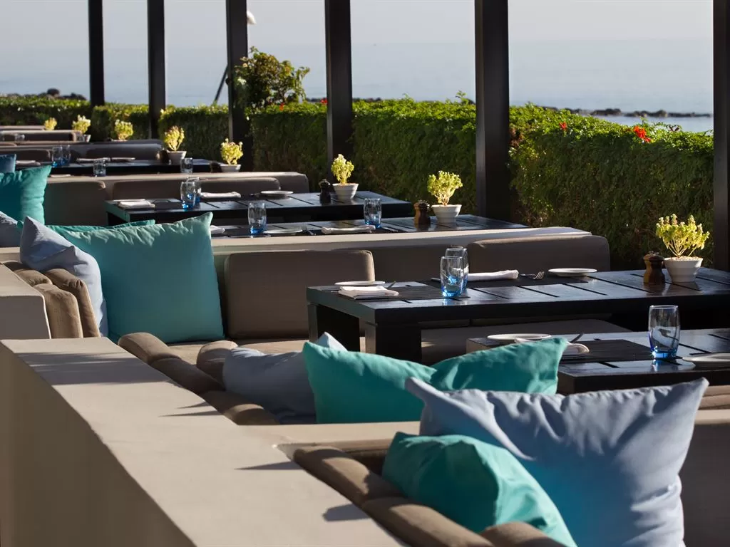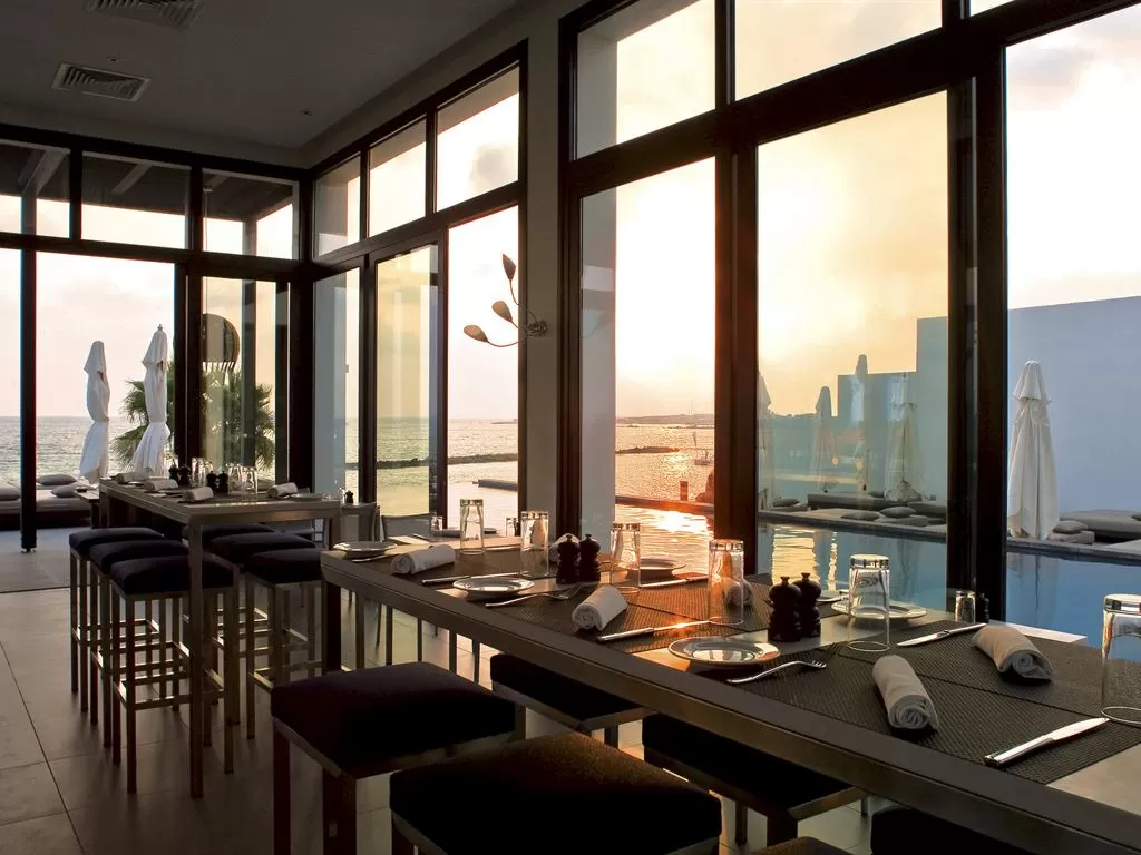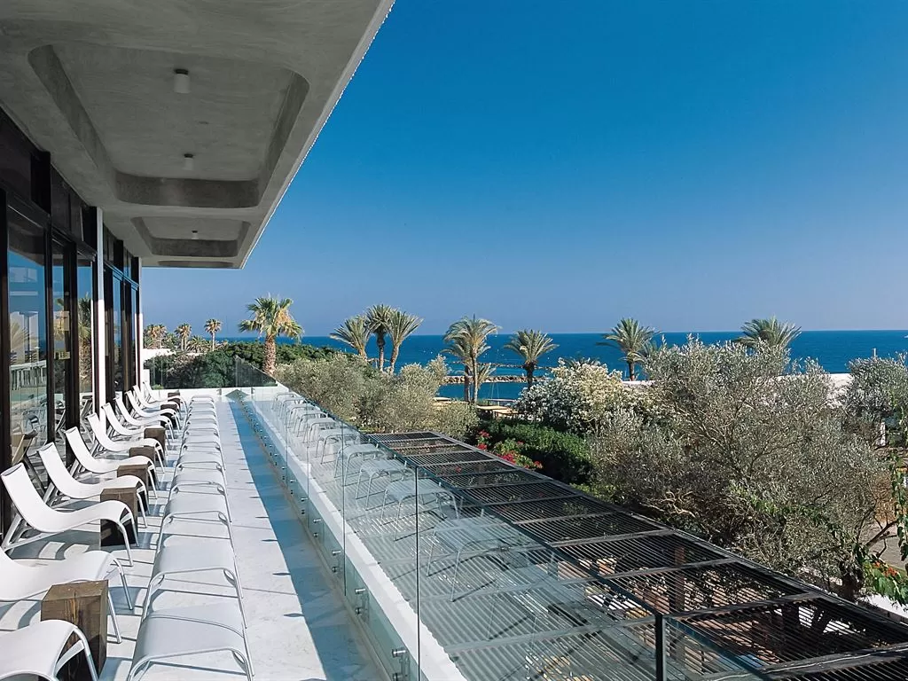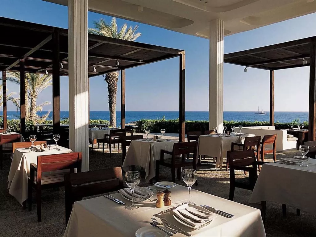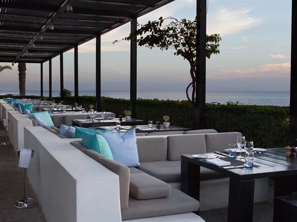 Kyma Suite. Эксклюзивное расположение в саду в непосредственной близости от побережья, настолько близко, что можно слушать шум прибоя. Отдельные зоны гостиной и спальни с потрясающим видом на море, большая выходящая к морю терраса, лужайка с большими лежаками и зона отдыха на крыше (~44 кв.м), откуда открывается вид на гавань Пафоса. Дополнительно: халаты, блюдо с фруктами, угощения от шеф-повара, вино и закуски по прибытии, эспрессо-машина, DVD-проигрыватель, мини HiFi-система, вечерняя подготовка номера ко сну, эксклюзивные туалетные принадлежности.