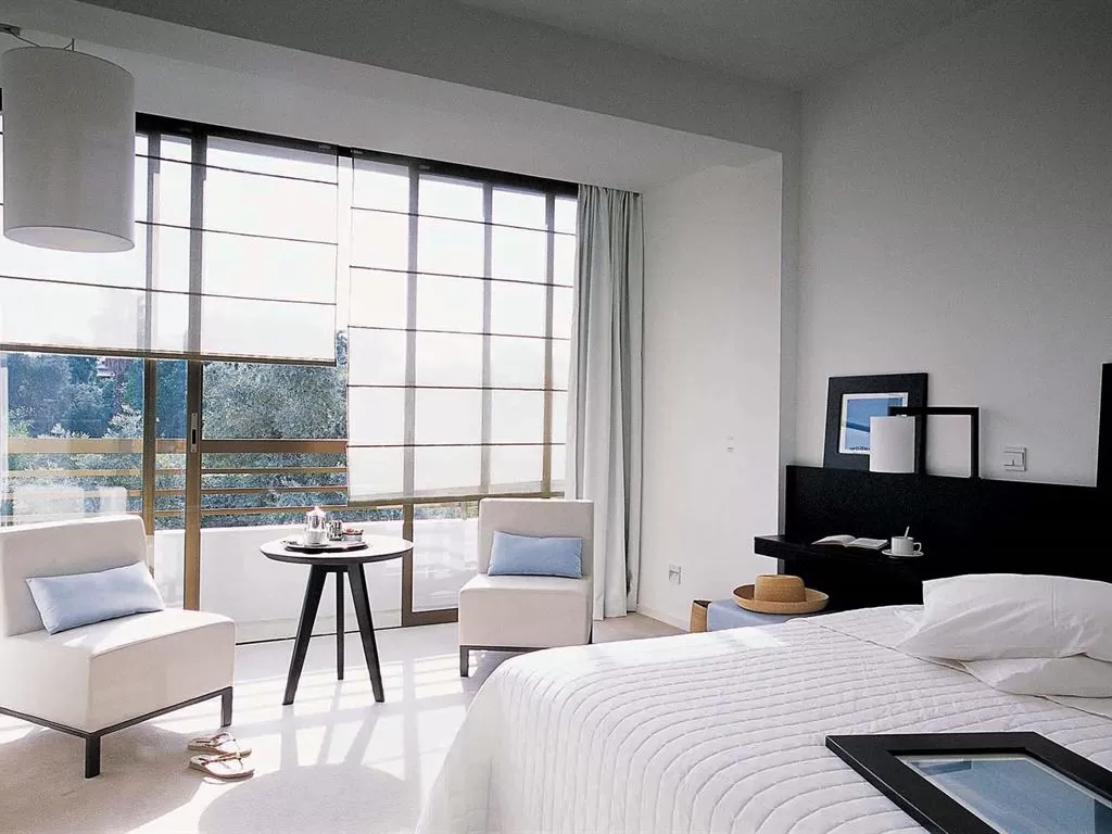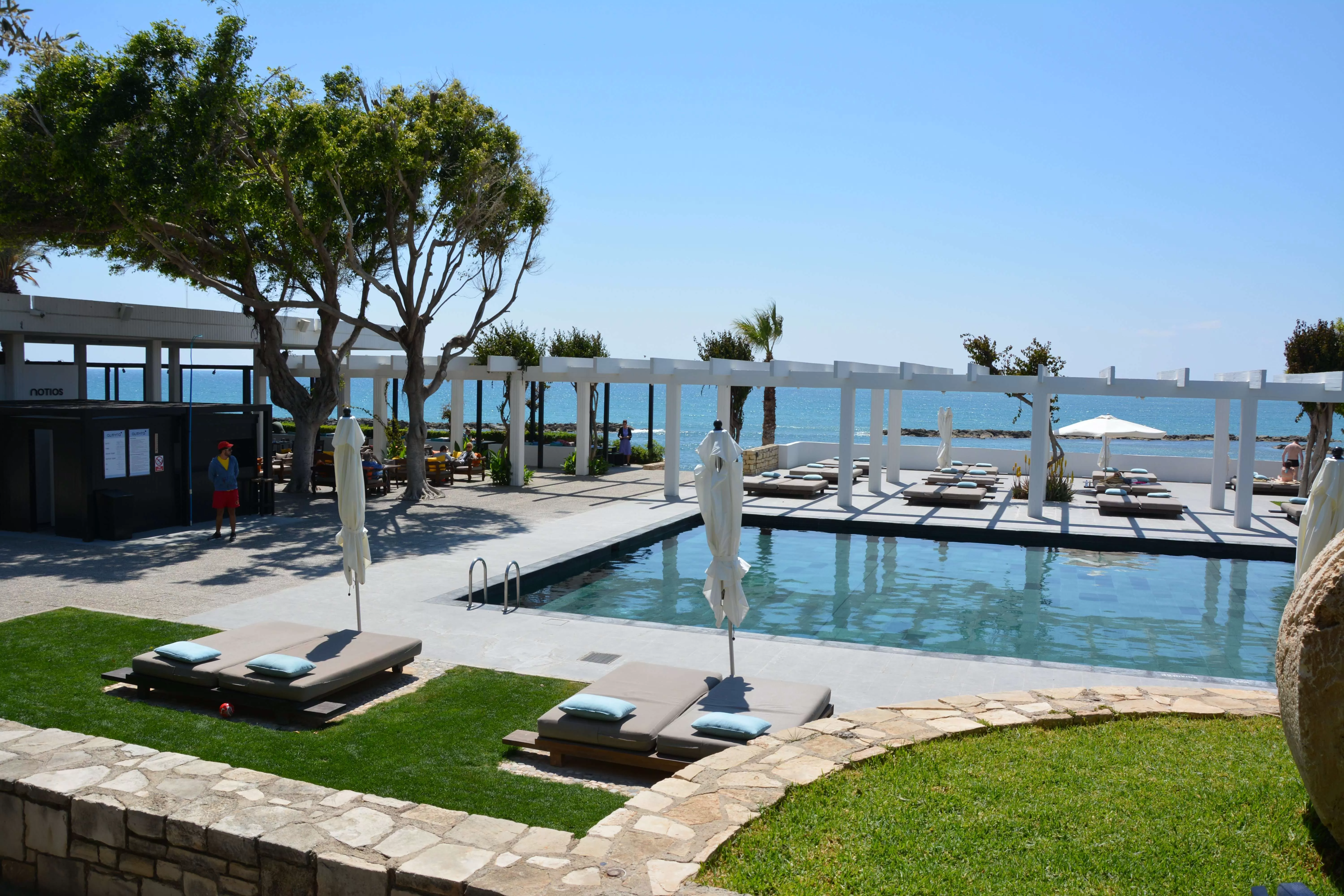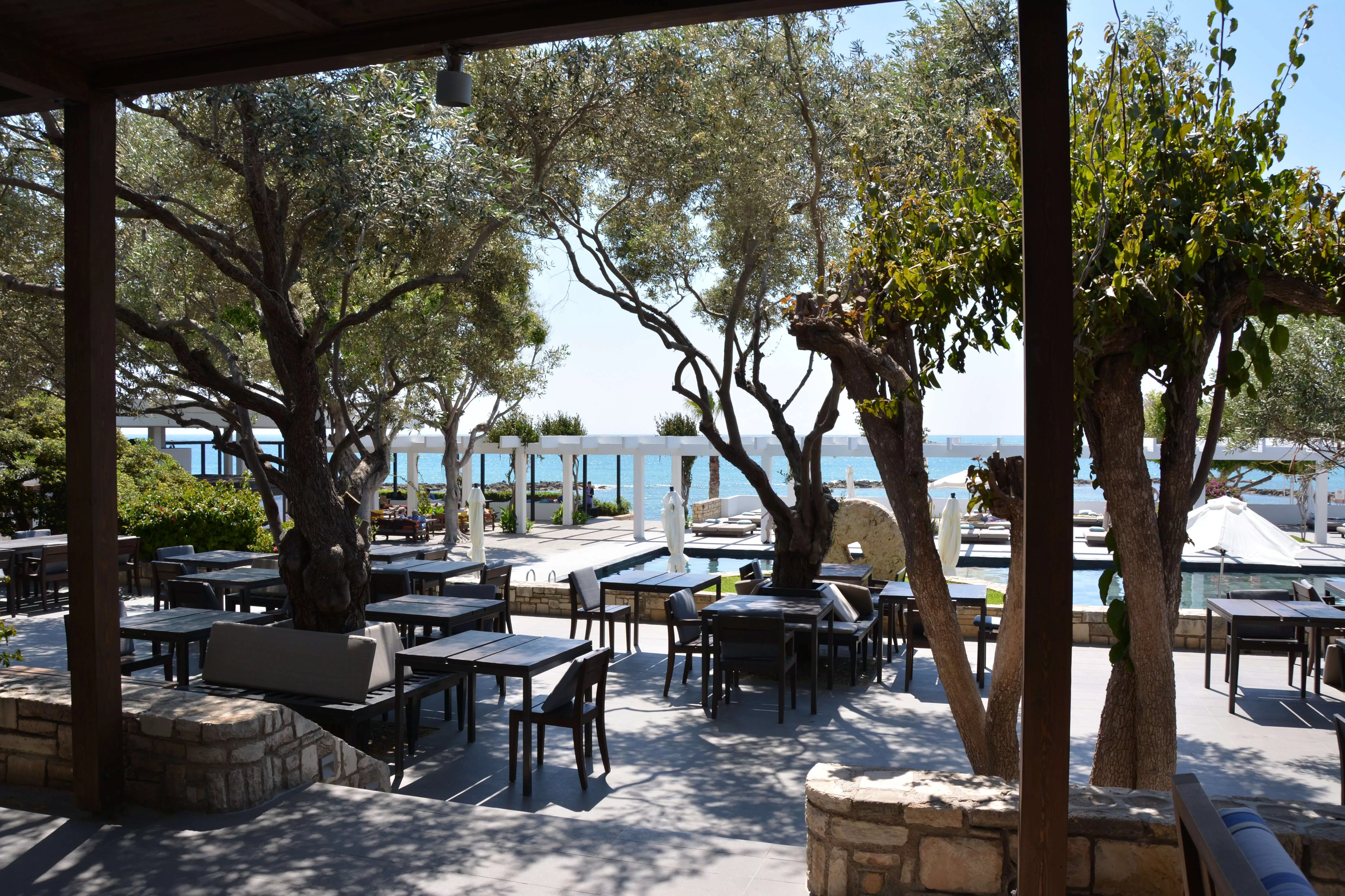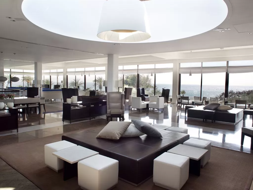 Kyma Suite. Эксклюзивное расположение в саду в непосредственной близости от побережья, настолько близко, что можно слушать шум прибоя. Отдельные зоны гостиной и спальни с потрясающим видом на море, большая выходящая к морю терраса, лужайка с большими лежаками и зона отдыха на крыше (~44 кв.м), откуда открывается вид на гавань Пафоса. Дополнительно: халаты, блюдо с фруктами, угощения от шеф-повара, вино и закуски по прибытии, эспрессо-машина, DVD-проигрыватель, мини HiFi-система, вечерняя подготовка номера ко сну, эксклюзивные туалетные принадлежности.