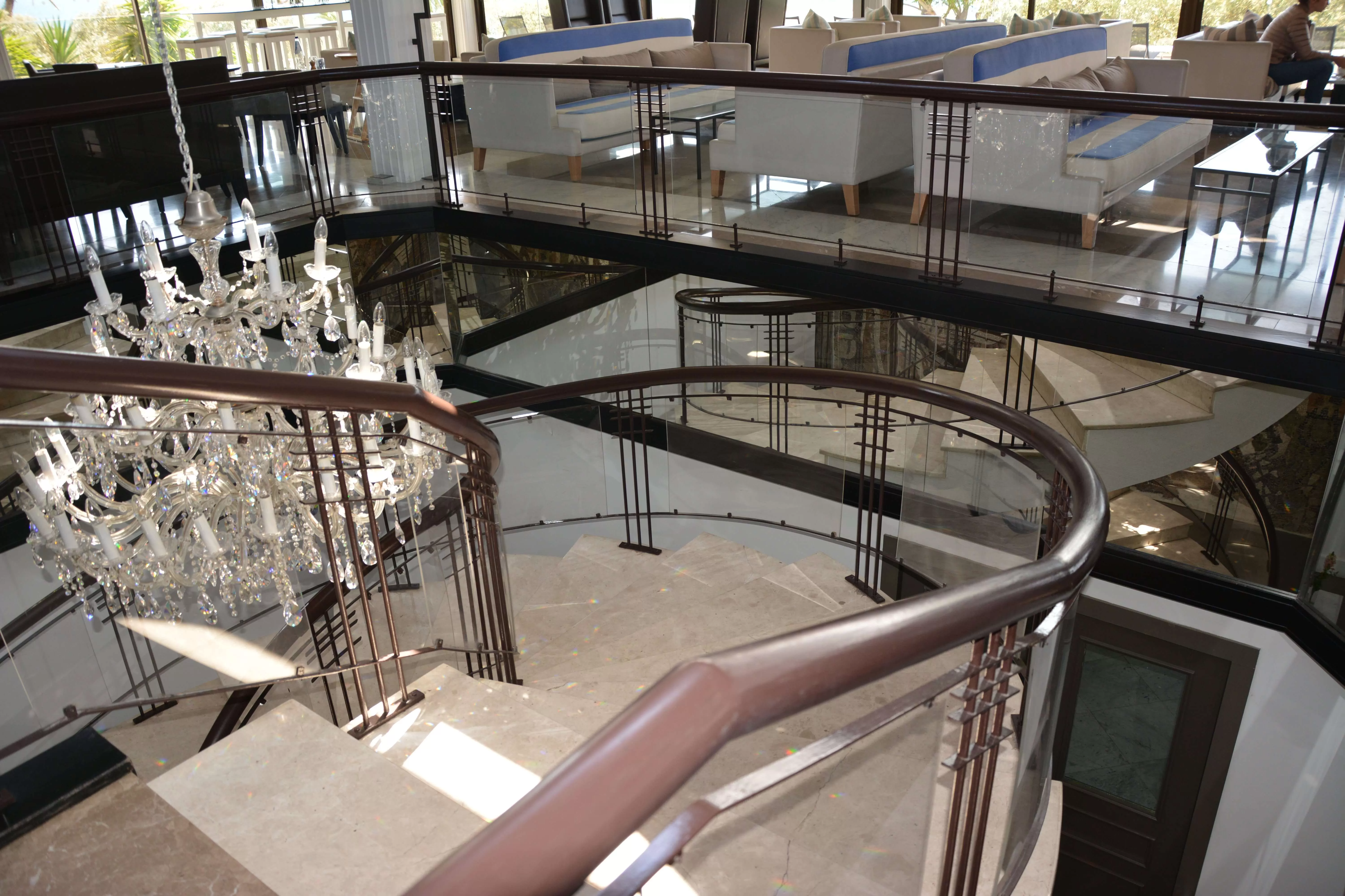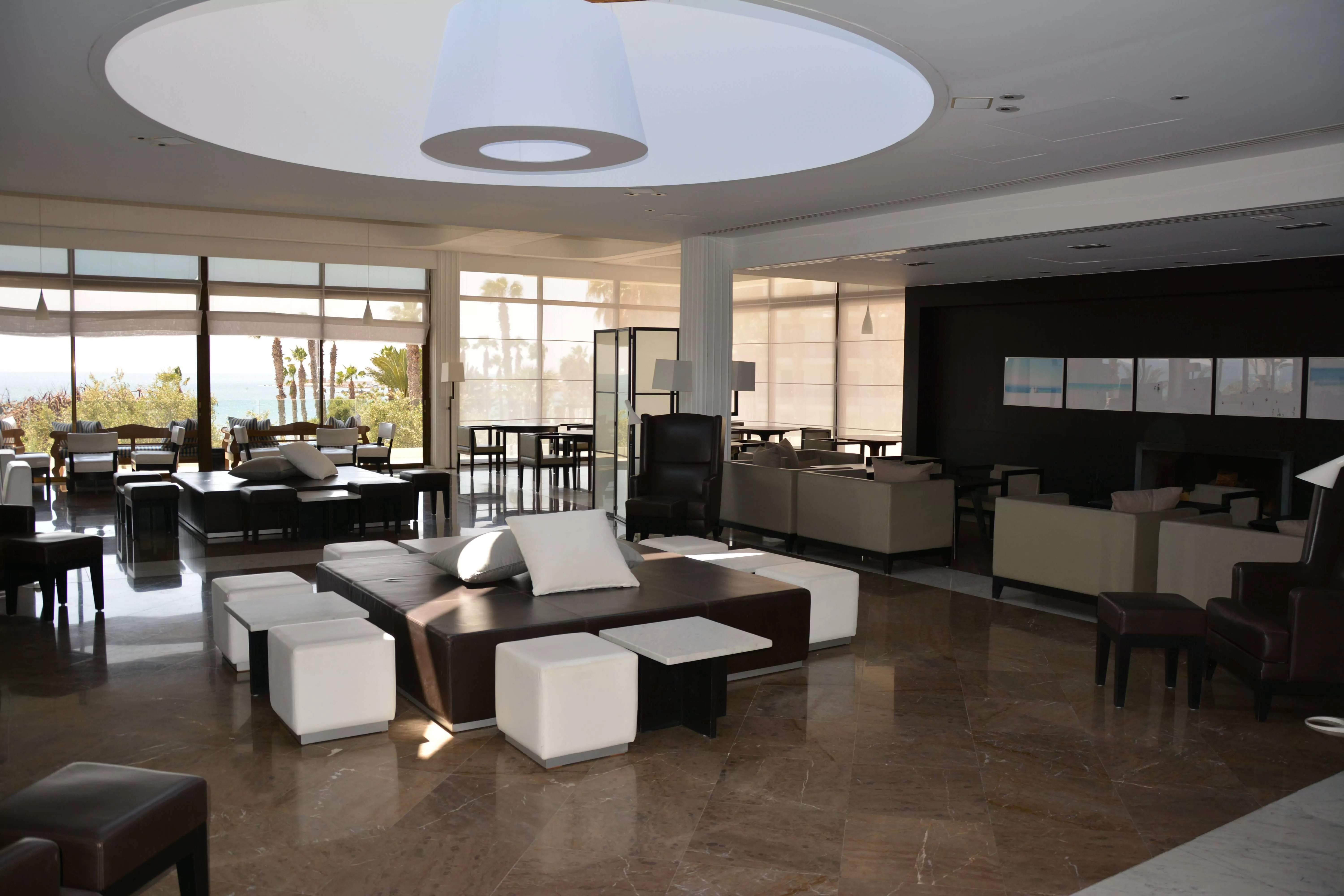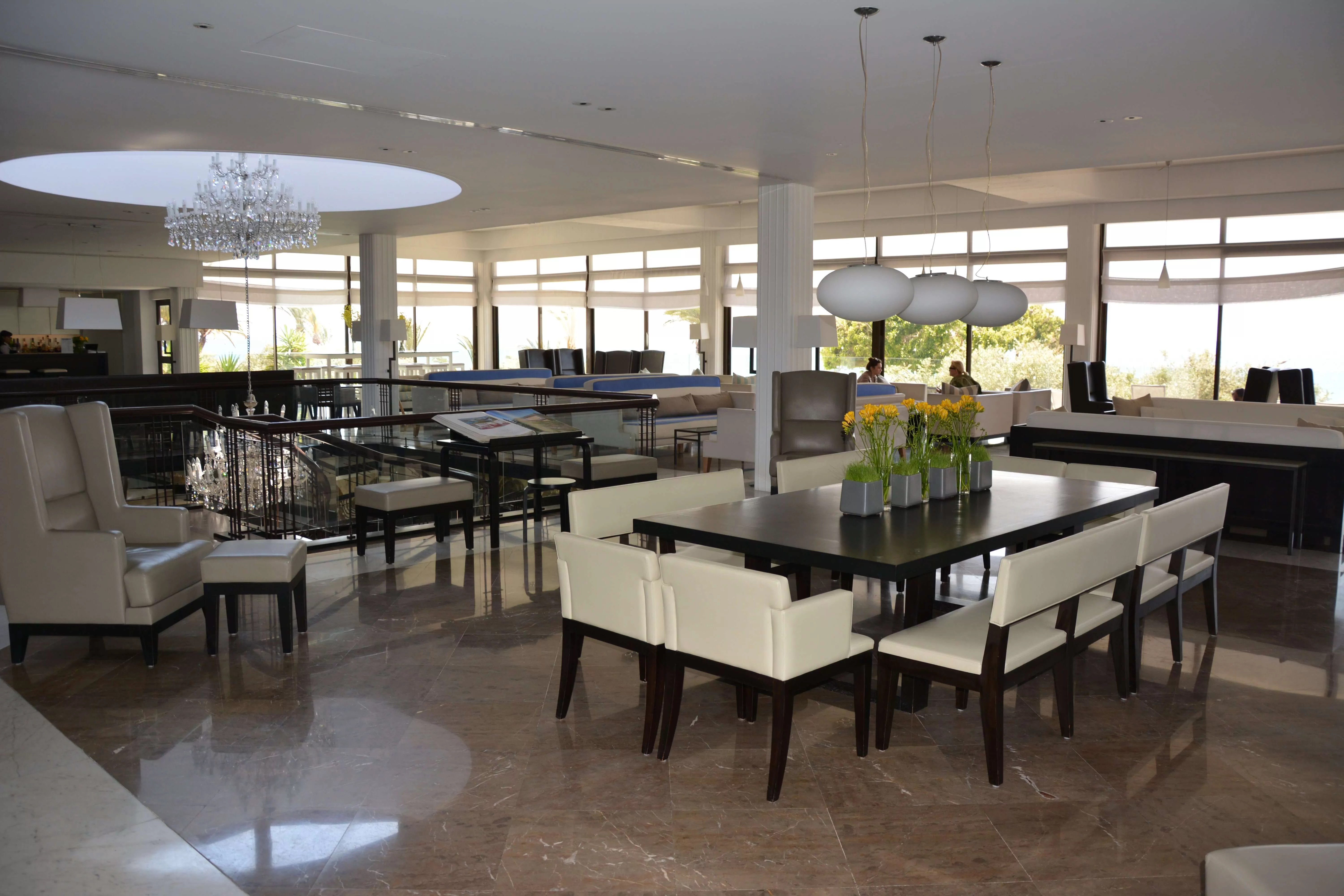 Находится рядом с лобби (камин, терраса с видом на море).