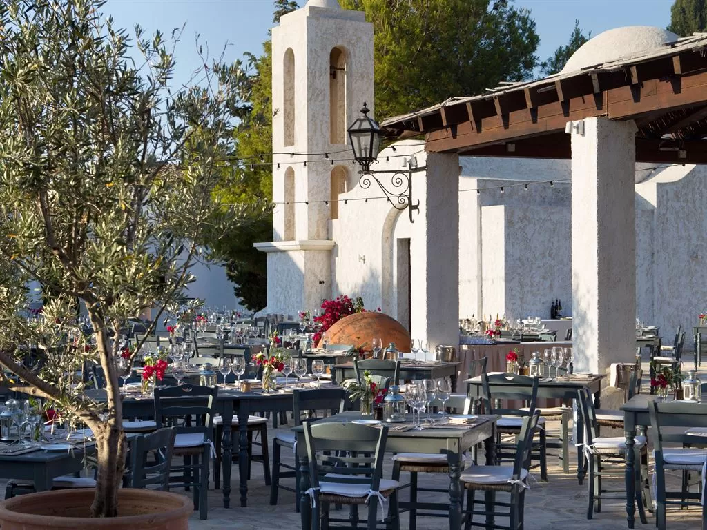 Четыре ресторана, предлагающие выбор из местных и международных блюд. В ресторане Amphora сервируется ежедневный завтрак «шведский стол» и тематические ужины. В Helios – большой выбор оригинальных блюд по меню a la carte и table d’hote. Basiliko – главный гастрономический ресторан, в то время как Pelagos – ресторан, работающий около бассейна в течение дня.