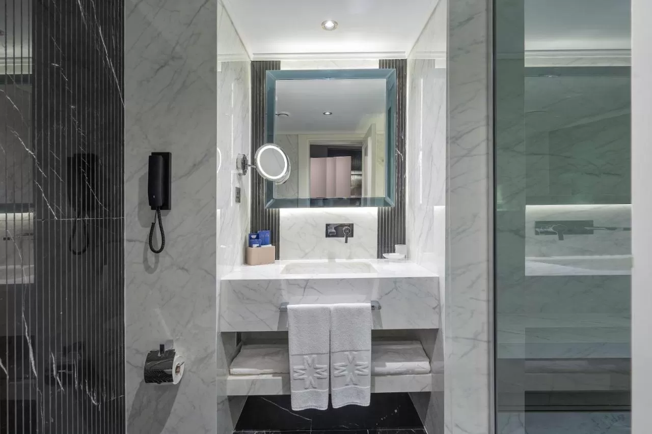 Вномерах имеется: гостиная зона, кондиционер, телевизор с кабельными каналами, сейф, письменный стол, кофемашина, собственная ванная комната с душем, туалетно-косметические принадлежности, фен, ванна и тапочки.