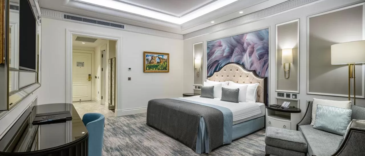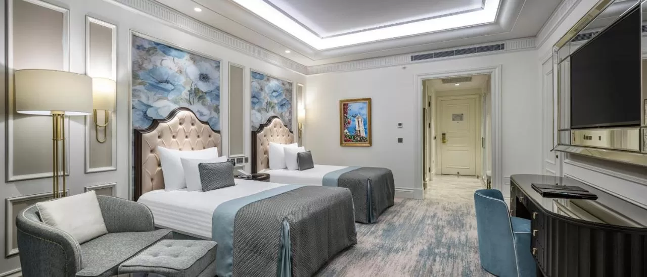 В номерах имеется кондиционер, телевизор, сейф, письменный стол, кофе-машина, мини-бар, платяной шкаф, чайник, собственная ванная комната с душем и бесплатными туалетно-косметическими принадлежностями.