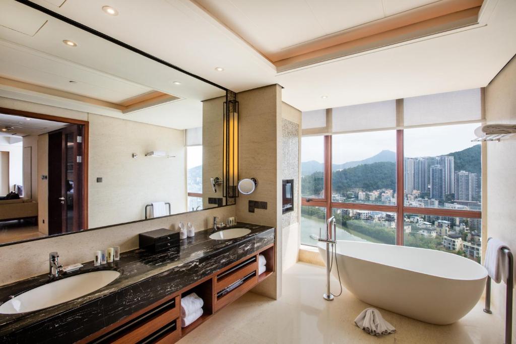 Все номера оформлены в современном стиле и оснащены ЖК-телевизором с 42-дюймовым экраном, мини-баром и сейфом. В уютной гостиной зоне установлен диван, а с балкона открывается вид на реку Линьчху или городской пейзаж Саньи. В ванной комнате предоставляются бесплатные туалетно-косметические принадлежности и фен.