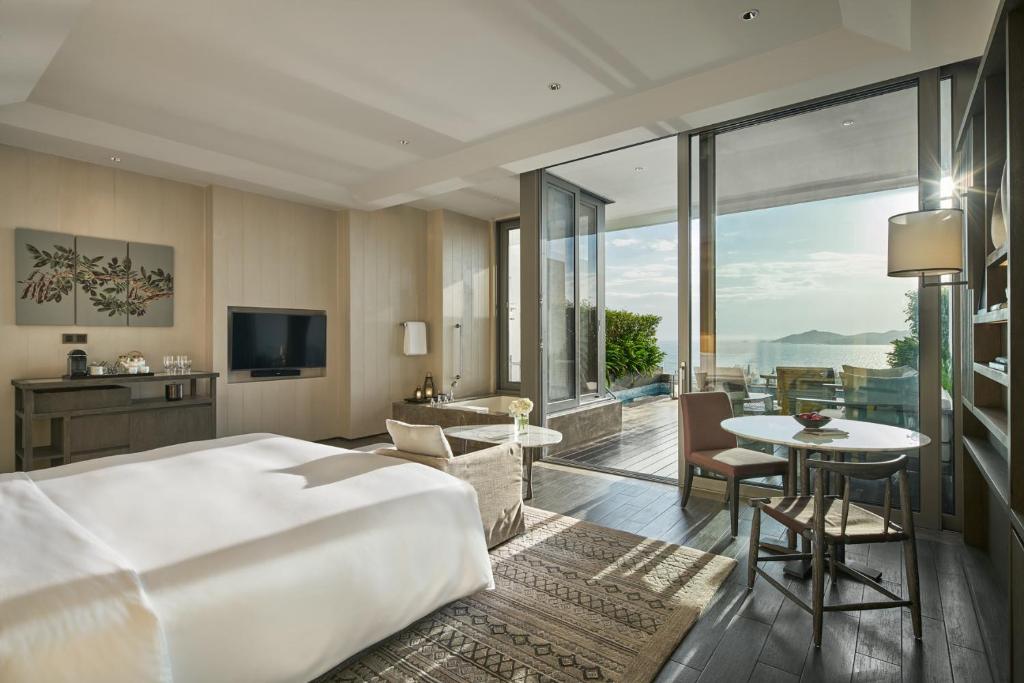Каждый номер светлый и просторный, оснащен кондиционером, гардеробной, гостиной зоной с диваном и телевизором с плоским экраном. Ванные комнаты укомплектованы ванной и душем, халатами, феном и бесплатными туалетно-косметическими принадлежностями.