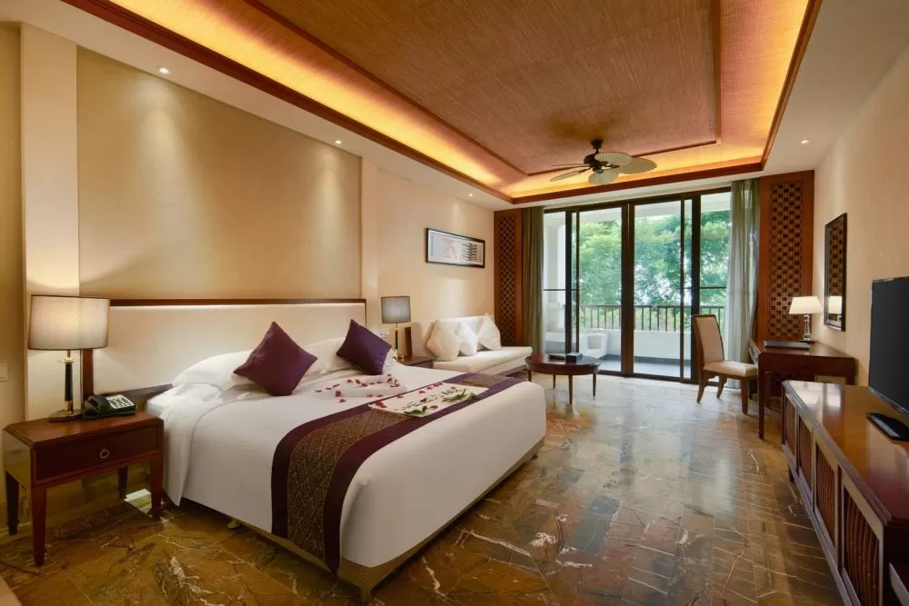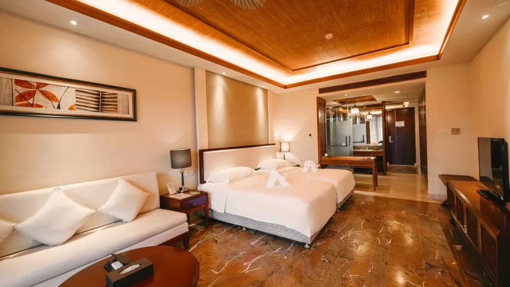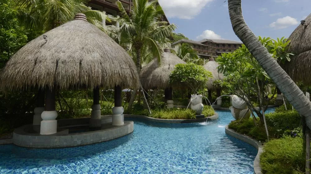 В бухте Ялонг-бэй, в 32 км от аэропорта, в 20 км от центра города, на второй линии от моря, в 800 от пляжа, в 300 м от торговой улицы.