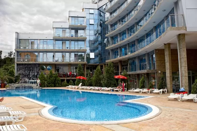 Открытый бассейн с бесплатными лежаками и зонтами; фитнесс; бильярд (€); массаж (€); сауна(€).