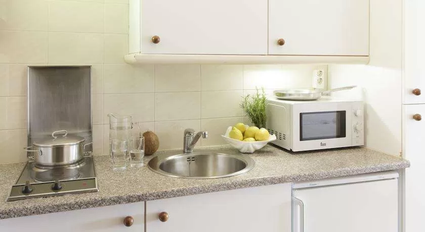 Светлые апартаменты курортного отеля Giverola с кафельными полами оборудованы кухней и гостиным уголком со спутниковым телевидением.