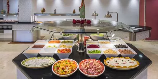 ресторан: шведский стол, блюда испанской и интернациональной кухни (завтрак 07:45-10:00, обед 13:00-14:45 и ужин 19:00-21:45). Возможные типы питания: полупансион, полный пансион (напитки не включены во время обеда и ужина, на завтрак включены: соки, кофе, чай, молоко, вода). Поздний ужин только по прибытии, ранний завтрак только при отъезде; при питании полупансион можно изменить ужин на обед.
