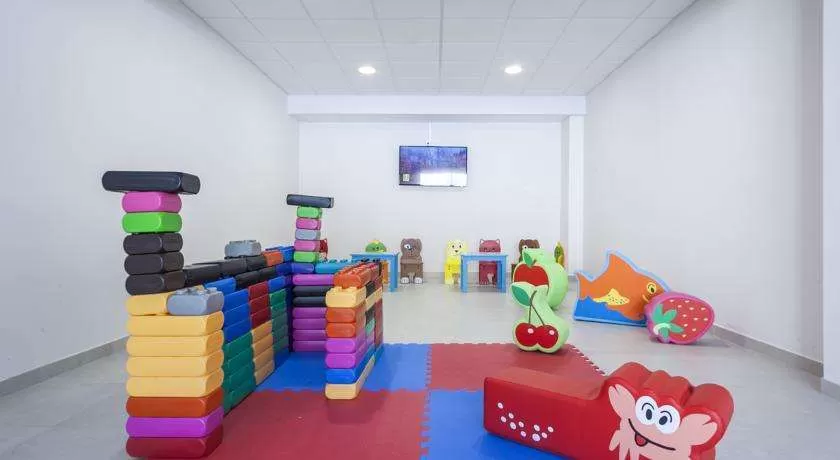 Игровая площадка и комната, детские стульчики в ресторане, мини-клуб и мини-диско (в высокий сезон), детская кроватка, детский бассейн с горками.