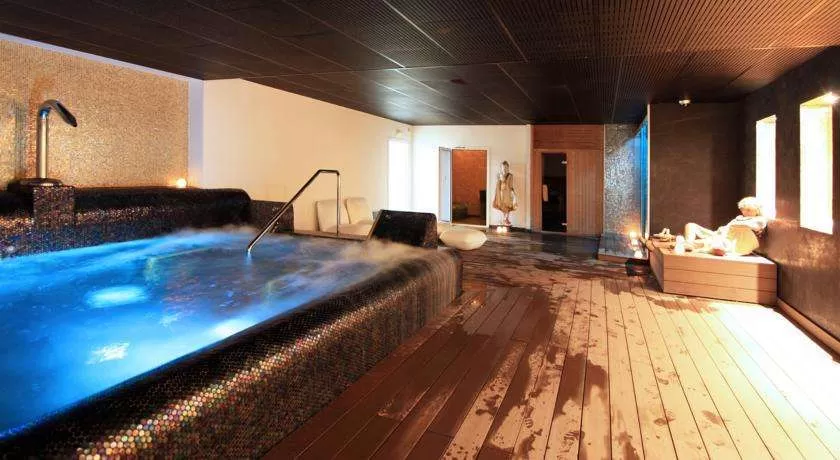 Инфраструктура включает открытый бассейн, закрытый бассейн, террасу у бассейна с лежаками, зонтиками и полотенцами, сад.