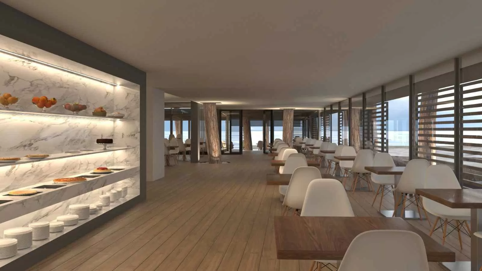Индустрия питания представлена рестораном типа шведский стол с возможностью наблюдать процесс приготовления блюд, рестораном a la carte (платно), лобби-баром с небольшой библиотекой и чилл-аут баром.