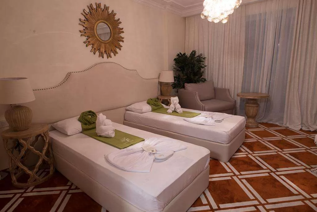 Комплекс "Терма Эко" (Therma Eco) 5* с великолепным пятизвездочным отелем, бассейнами с минеральной и морской водой, гидроканалом, ресторанами с европейской и национальной кухней, большим спа-центром, тренажерным залом, боулингом, фитнес-залом и йоги, современными двухэтажными виллами, расположен в нескольких метрах от песчаного морского пляжа, что способствует прекрасному и полноценному отдыху у моря, а наличие в комплексе Олимпийского пятидесятиметрового бассейна, крытой ледовой арены, спортивных площадок и корта для занятий волейболом позволяют организовать в комплексе тренировки как для профессиональных спортсменов, так и активный отдых для всех отдыхающих.