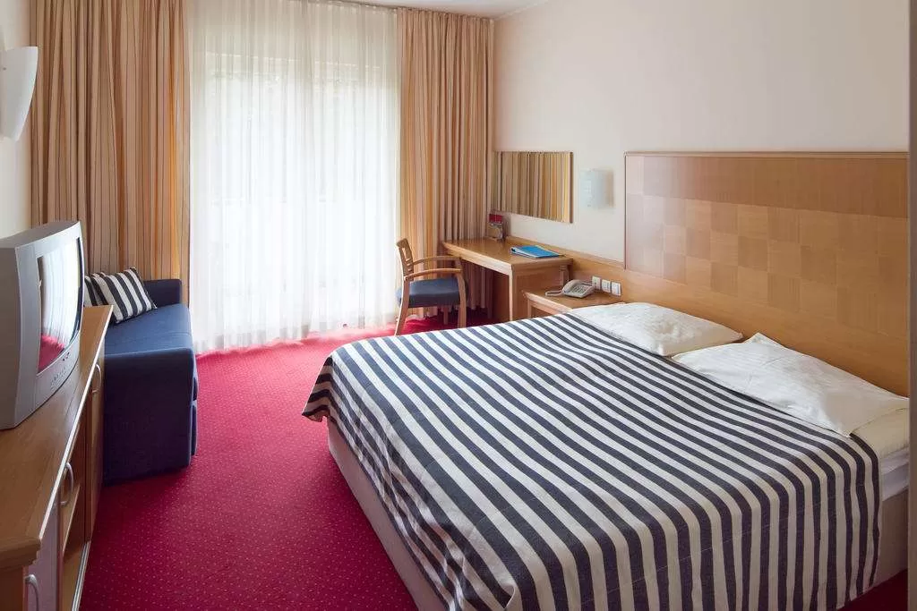 В номерах: ванная комната (ванна/душ, туалет, фен), ТВ, телефон, мини-бар, сейф, беспроводной доступ к сети Интернет. Балкон в большинстве номеров, несколько номеров без балкона в категории «стандарт». Во всех номерах французская кровать. Большинство номеров двухместные с двумя дополнительными кроватями. Дополнительная кровать – это раскладывающийся двуспальный диван.