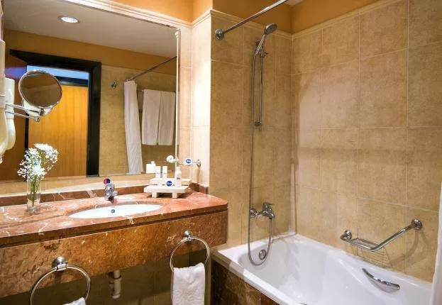2 односпальные кровати или одна кровать King Size, полностью экипированная ванная комната, фен, полноразмерное зеркало, терраса, телефон, сейф, мини-бар, индивидуальный кондиционер, спутниковое ТВ, музыкальный канал, набор для приготовления чая и кофе