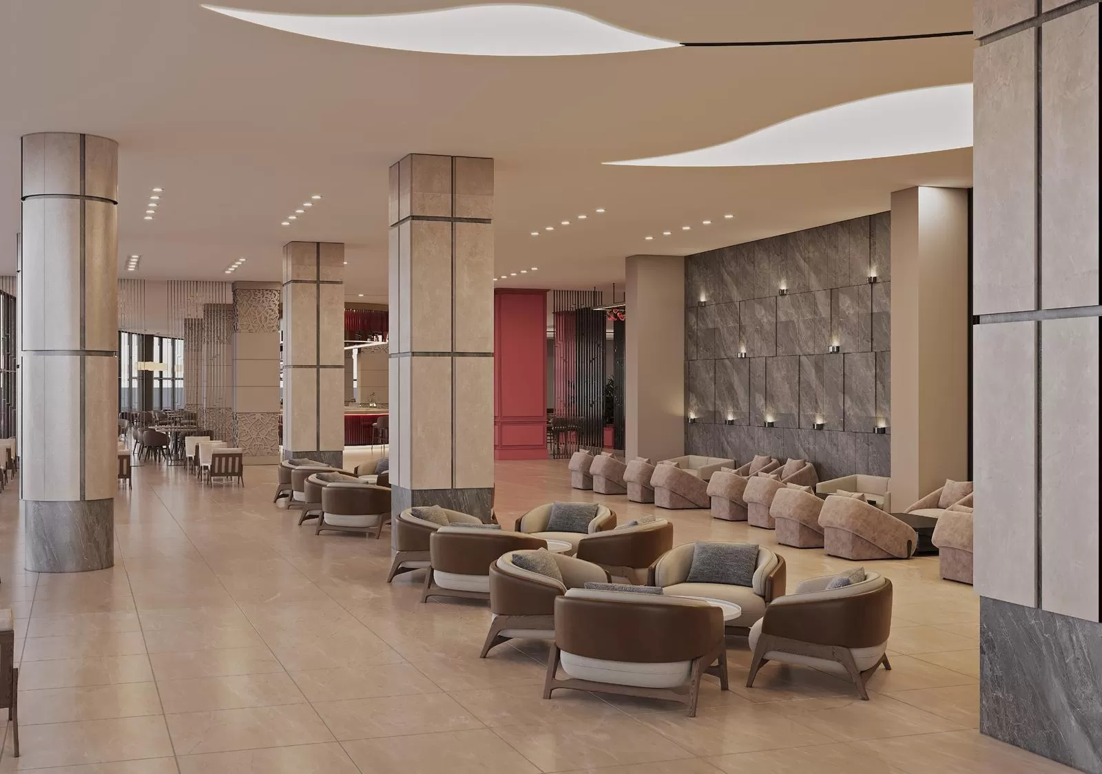 Номера укомплектованы двуспальной кроватью или двумя отдельными кроватями, прикроватными тумбочками, гардеробом с вешалками, комодом для одежды, рабочим столом со стулом, креслом или зоной отдыха, мини-баром, сейфом, кондиционером, телевизором с плоским экраном, чайником и ванной комнатой.