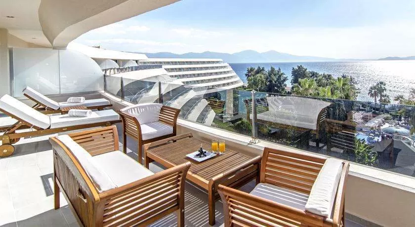 Отель расположен в 75 км. от аэропорта г. Измир, в 4 км. от центра г.Кушадасы, на берегу моря. До античного города Эфес- 18 км. Построен в 1997 году, общая площадь 40.000 кв.м., последняя реставрация сделана в 2012м году. Отель состоит из трёх 6-ти этажных зданий (80% номеров с видом на море).