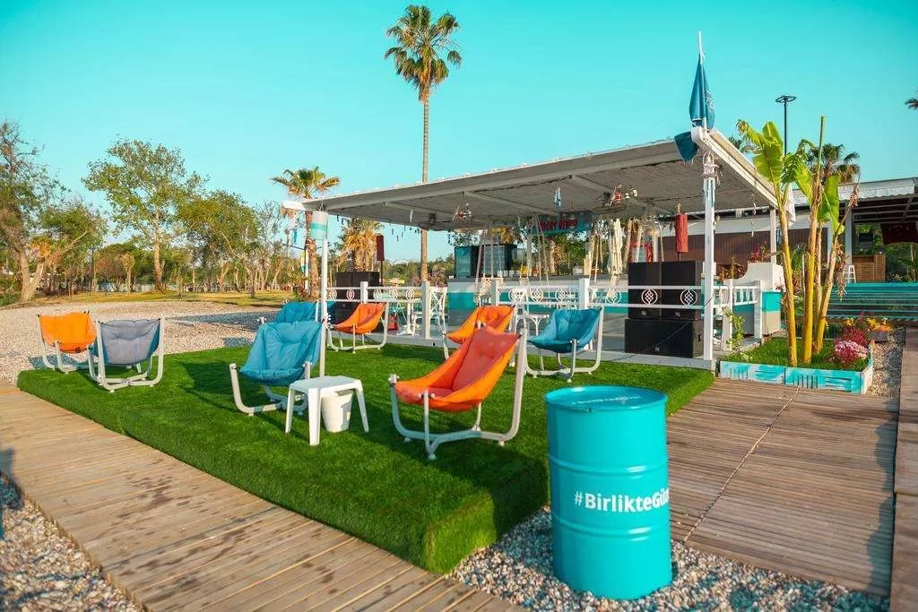 На пляже: раздевалки и туалеты. Питание и напитки на пляже за доп плату. Доступ к пляжу Коньяалты, в парк Ататюрк посредством лифта. В зимний сезон пляж не работает.
