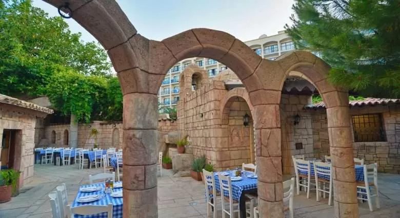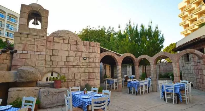 - ресторан Les Etoiles предлагает блюда международной кухни; - ресторан Yacht Club предлагает широкий выбор легких закусок международной кухни из меню; - ресторан Thalassa, который специализируется на блюдах международной кухни, открыт на обед и ужин; - ресторан Ouzeri предлагает блюда международной и греческой кухни под открытым небом; - бар у бассейна предлагает освежающие напитки; - коктейль-бар; - в паб Shakespear любители спорта могут посмотреть спортивные матчи. - 4 конференц-зала вместимостью до 250 человек.
