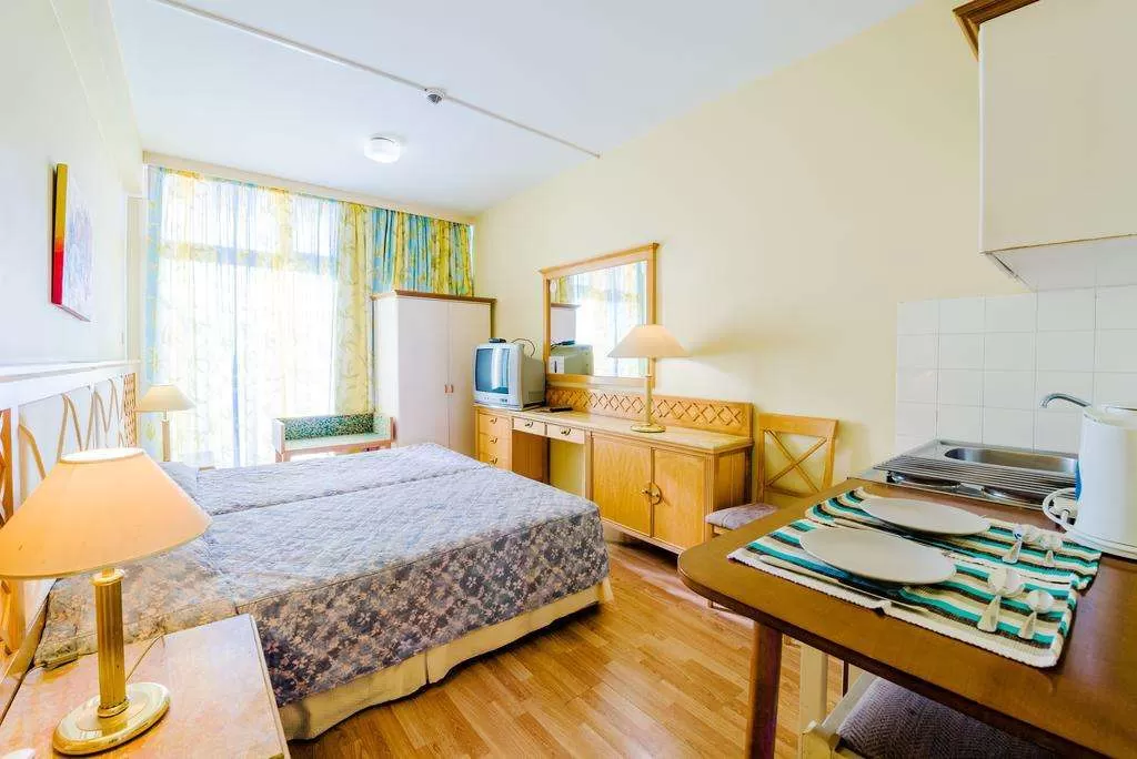 36 номеров Studio (24 м²).Во всех номерах:кондиционер, телевизор, телефон, кухня, холодильник, половое покрытие — ламинат, ванная комната, фен, балкон, чайник, уборка номера — 5 раз в неделю.