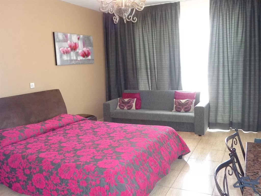 Studio: Двуспальная кровать и диван или 3 односпальные кровати.