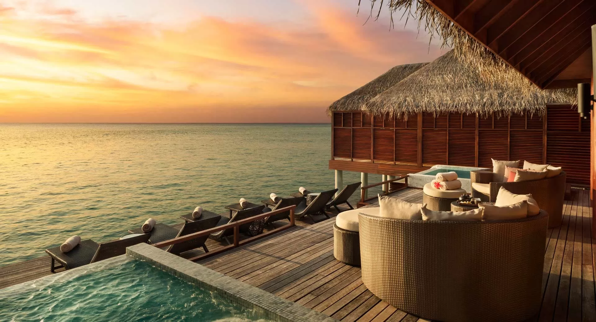Sunset over water suite (132 кв. м): аналогичны номерам категории Sunrise over water suite, но имеют вид на закат солнца.
