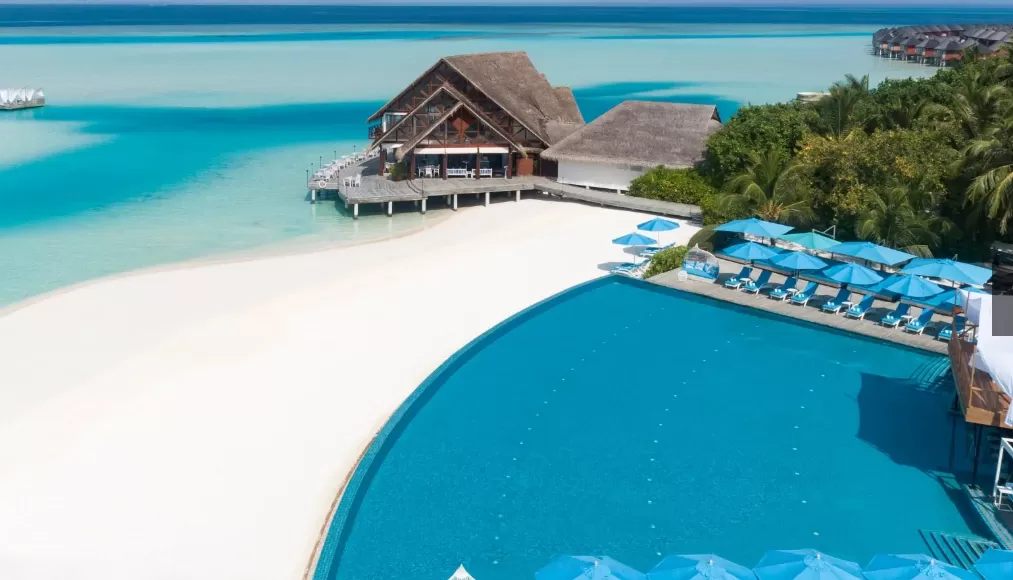 Мальдивские острова всегда считались лучшим местом для романтического отдыха, а этот новый отель расположен просто в настоящем тропическом раю. Белоснежный пляж, прозрачные воды лагуны и удивительные экзотические растения – волшебный мир сказок, который может для вас стать реальным. Большинство вилл отеля расположены на побережье, у кромки пляжа, позади некоторых из них есть частные садики с прохладными бассейнами. Некоторые виллы построены прямо в воде и вынесены далеко в море, так что сразу возникает ощущение жизни посреди океана. На всех «морских» виллах есть просторные террасы для принятия солнечных ванн, на некоторых есть бассейны, а в море здесь можно прыгать прямо с террасы. К услугам гостей занятия различными видами спорта, замечательный SPA-центр, а также два ресторана, в которых можно отведать блюда итальянской кухни и деликатесы, приготовленные на гриле.