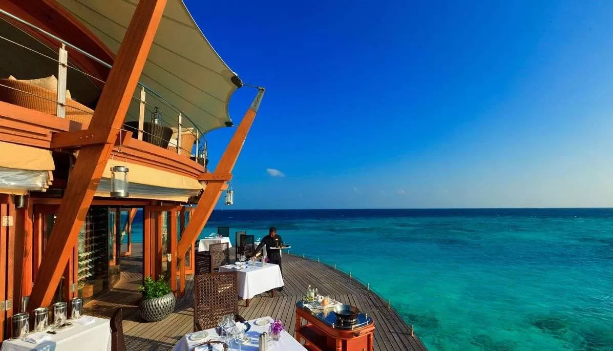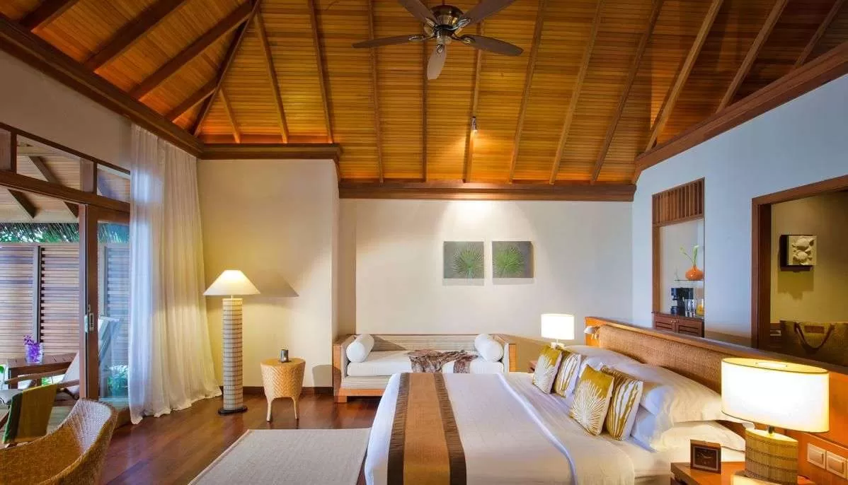 15 Water Villa (92 м2, макс. 3 чел.). Отдельно стоящие водные бунгало: спальня с кроватью king-size, зона гостиной, ванная комната с видом на океан, меблированная терраса с прямым спуском в воду.