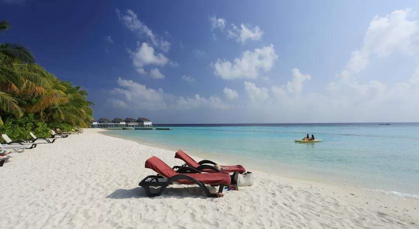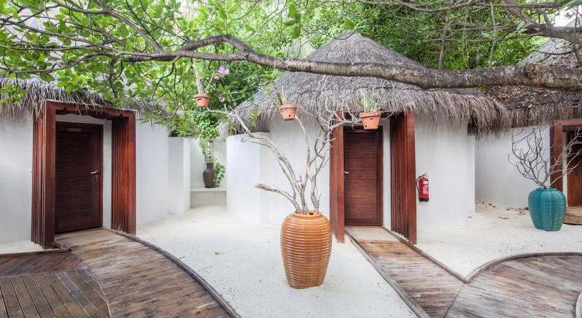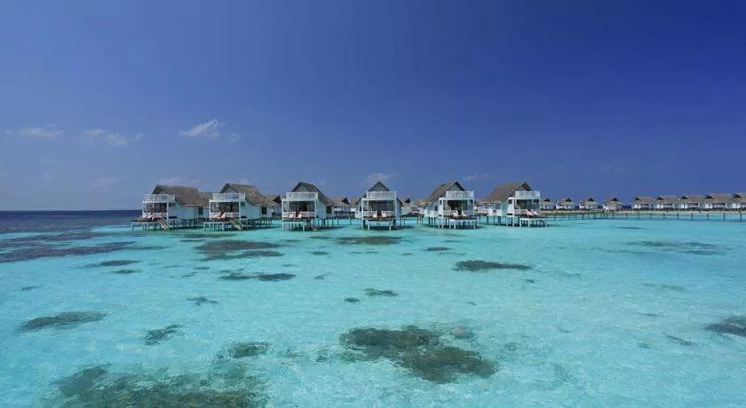 18 Deluxe Water Villa (87 м², макс 3 или 2+1 чел.). Водные виллы расположены на деревянных сваях в водах лагуны. Спальня, объединенная с гостиной, ванная комната с джакузи и душевой кабиной, душ на открытом воздухе, обширная терраса c прямым спуском в океан. Номер можно бронировать с услугой Island Club.