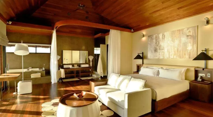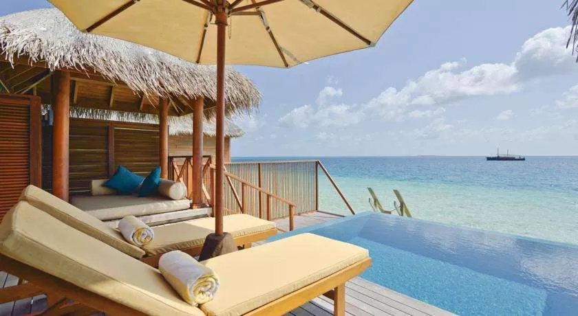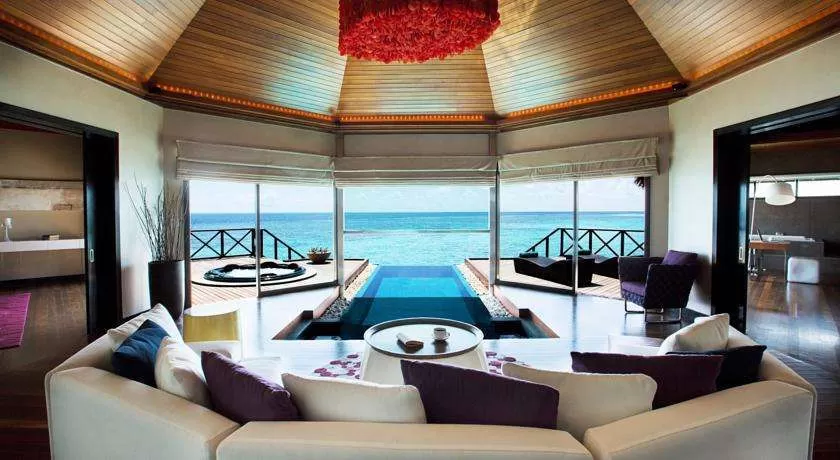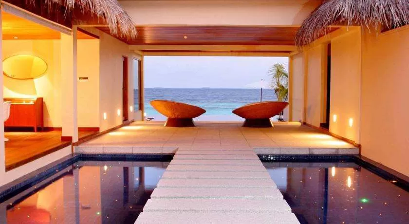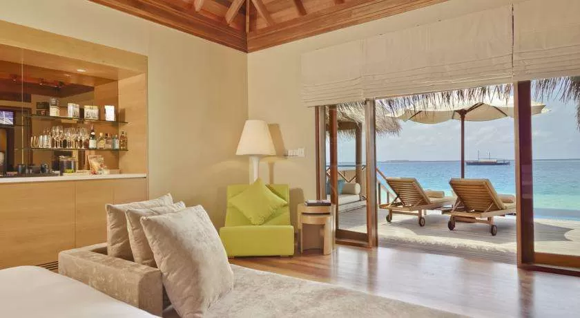 В отеле 44 номера: 8 Beach Bungalow with Plunge Pool (125 м², макс. 3 или 2+1 чел.). Одноэтажные отдельно стоящие береговые бунгало с прямым выходом на пляж и видом на лагуну. Частный дворик с большой ванной, душем и бассейном. Терраса с зоной отдыха и обеденным столом; 8 Deluxe Beach Bungalow with Plunge Pool (160 м², макс. 3 или 2+1 чел.). Одноэтажные отдельно стоящие береговые бунгало улучшенной планировки – изысканная мебель, более просторная открытая зона отдыха и площадь террасы. Частный дворик с бассейном, второй бассейн расположен на террасе с видом на океан; 12 Lagoon Bungalow with Plunge Pool (130 м², макс. 3 или 2+1 чел.). Водные бунгало с видом на рассвет. Двухуровневая терраса: зона отдыха находится на верхнем уровне, а терраса с шезлонгами – на нижнем. Ванная комната с ванной и душем, частный бассейн на террасе; 12 Ocean Bungalow with Plunge Pool (160 м², макс. 3 или 2+1 чел.). Водные бунгало с видом на закат. Спальня, гостиная со стеклянной панелью в полу. Трехуровневая терраса с бассейном, обеденной зоной и зоной отдыха, шезлонгами. Ванная комната с видом на океан: большая ванна с функцией гидромассажа, душ; 2 Ocean Pavilion with Private Pool (330 м², макс. 4 или 4+2 чел.). Роскошные водные павильоны, расположенные в 200 метрах от берега, с видом на закат. 2 спальни, 2 ванных комнаты, гостиная, столовая. Двухуровневая терраса с зоной отдыха, джакузи, шезлонгами, прямым спуском в воду. Бассейн (занимает часть гостиной и террасы). Круглосуточно услуги батлера (Thakuru). Виллы идеально подходят для спокойного уединенного отдыха; 1 Beach Pavilion with Private Pool (800 м², макс. 4 или 4+1+1 infant). Двухэтажная отдельно стоящая вилла с прямым выходом к частному участку пляжа. 2 спальни (на верхнем и нижнем этажах), гостиная, столовая, 2 ванных комнаты на открытом воздухе (одна – с ванной и душем; вторая – с душем). Частный бассейн на террасе. Круглосуточно услуги батлера (Thakuru). Этот тип номера отличает авангардный современный дизайн;1 CUBE (463 м², макс 6 или 4+2 чел.). Роскошное двухэтажное бунгало, окруженное тропической зеленью, с прямым выходом на пляж. На первом этаже: гостиная, кухня, столовая, терраса бассейном, лаунж с грилем-барбекю, внутренний садик, зона отдыха с бильярдом и настольным теннисом. На втором этаже: 3 спальни, тренажерный зал, 2 мини-бара, игровая комната (с видеоиграми), мини-холодильник для вина. Круглосуточно услуги батлера.
