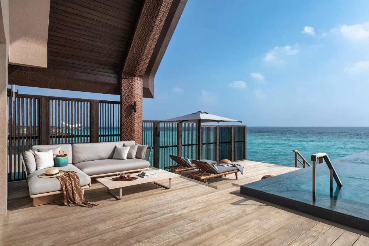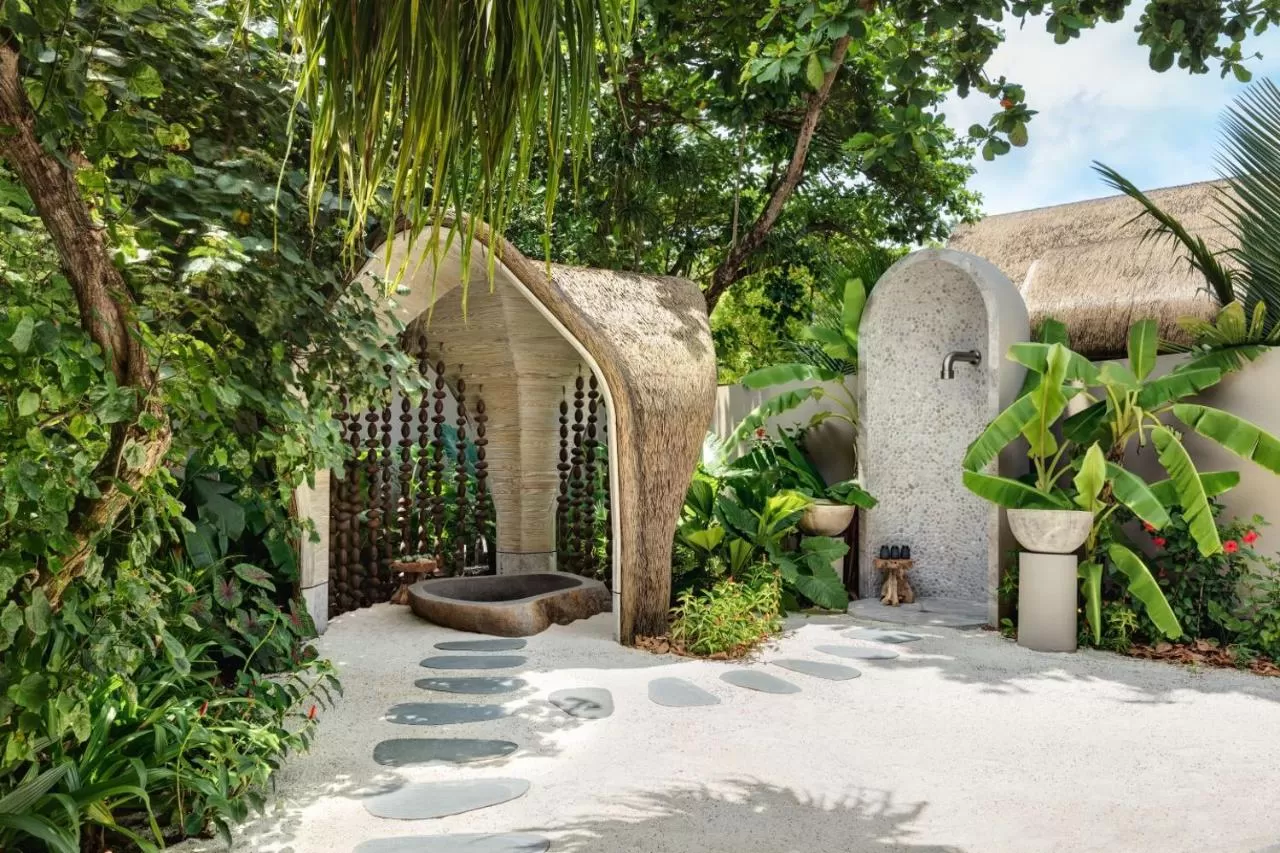 Курорт включает фитнес-центр, живописный сад и частный пляж, а также террасу для отдыха.