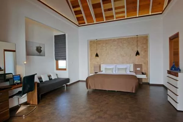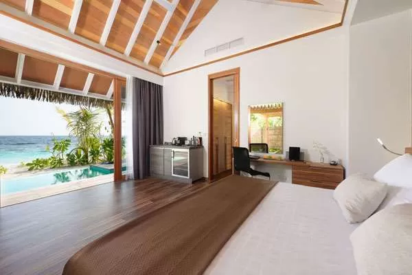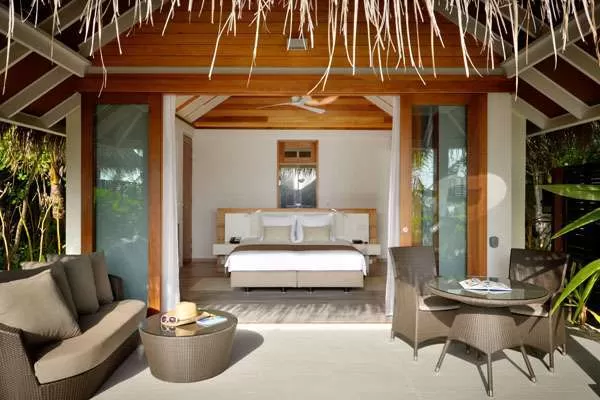 4 Ocean Villa (80 кв. м) расположены на сваях над водой. В просторной спальне находится кровать king size и зона отдыха с видом на океан. В ванной комнате, обращенной к лагуне, есть джакузи, душ, две раковины. На террасе гостей ждут лежаки под зонтиком и спуск в океан.